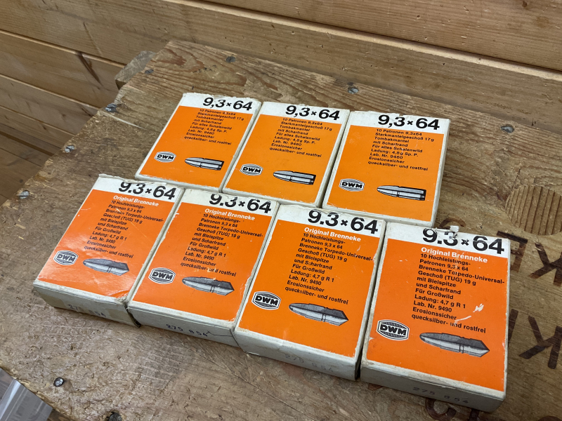 Munition DWM Brenneke TUG 19g und Starkmantelgeschoß 17g, Kal. 9,3x64 !!!