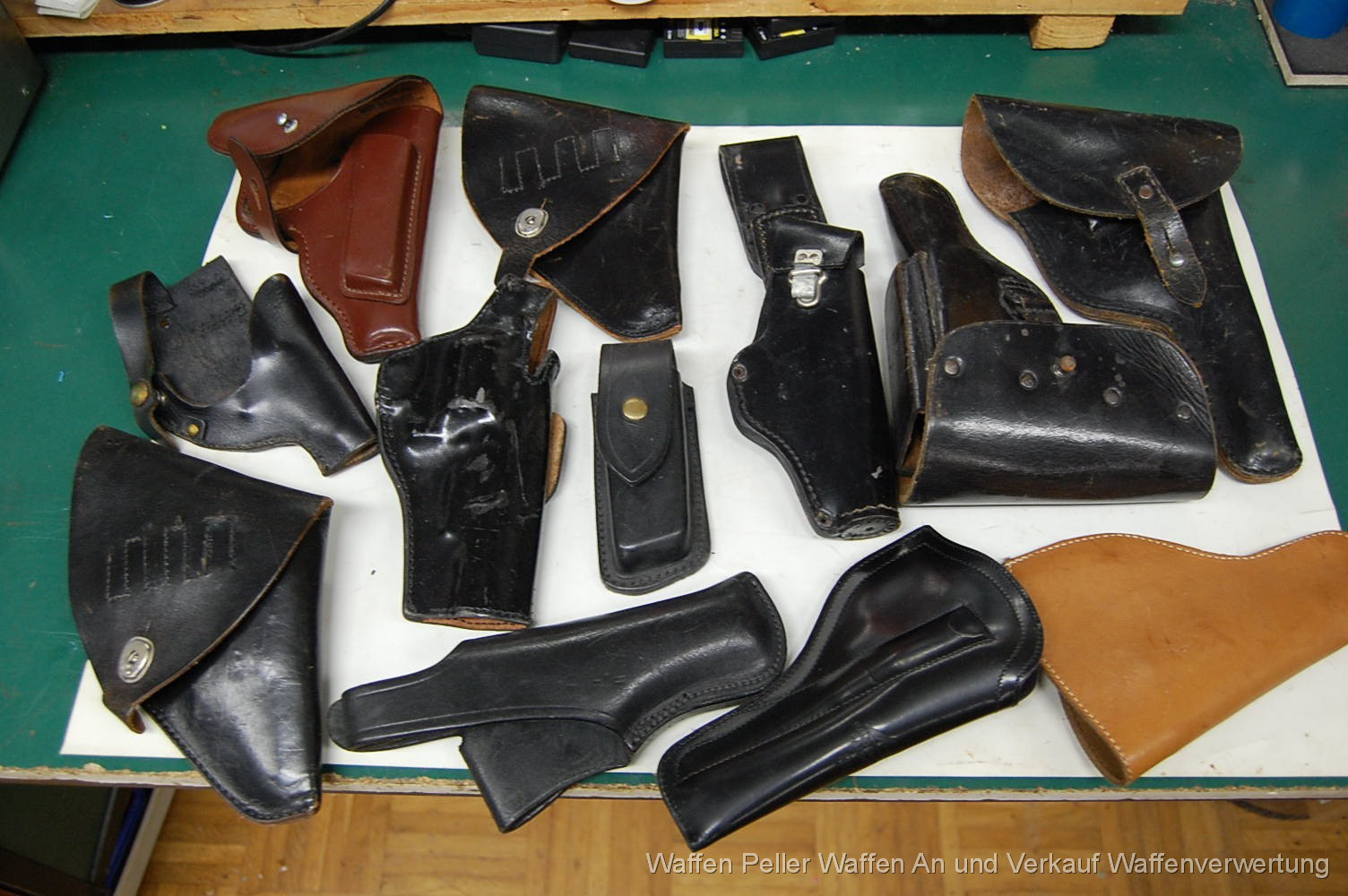 Pistolen u Revolver Gürtel Holster Konvolut 11 Stück + Magazintasche