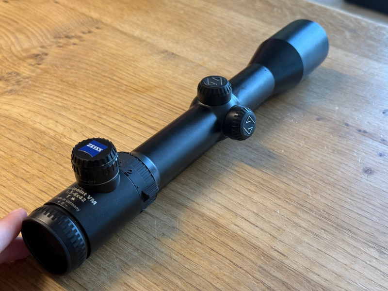 Zum Verkauf steht ein Zeiss Varipoint VM 1,5-6x42 T* Zielfernrohr, bei dem leider der Rotpunkt defekt ist. Ansonsten befindet sich das Zielfernrohr in einem guten Zustand. Das Absehen besteht nur aus einem Punkt in der Mitte ohne ein Fadenkreuz.