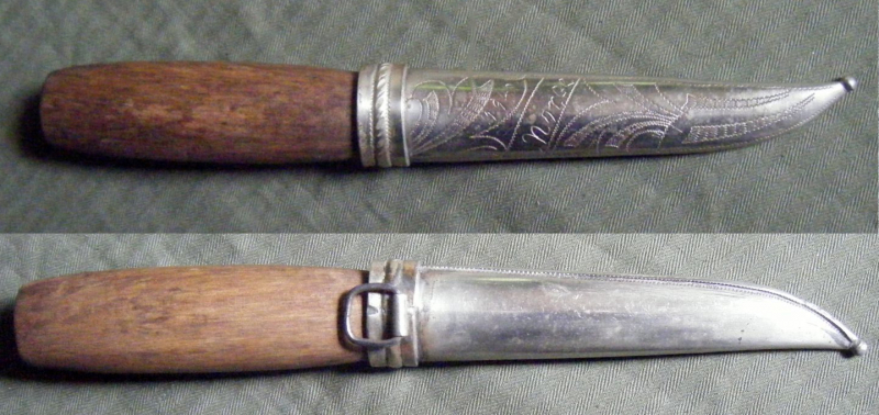 Sehr schönes Messer Norwegischer Machart ähnlich den Finnemessern mit Metallscheide
