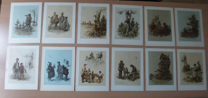 Ideal für Kellerbar und/oder Jagdhütte: Jagdcartoons mit Motiven von Heinz Geilfus. Einzelbild ca. 36x26 cm, 12 Stück.