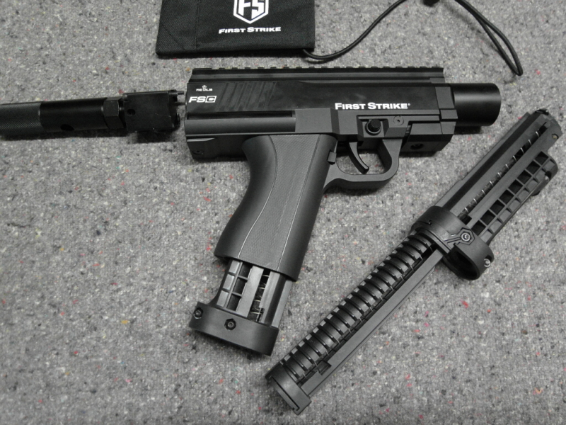 First Strike FSC. Cal. 68, F im Fünfeck, CO2. Verkauft wird die TOP-Rail, Mag-Extender, ASA- bzw. CO2 Adapter. Die Pistole wird als defekt verkauft. Das eine Magazin ist ohne Mängel. Bei dem 2ten Magazin ist die Schraubbefestigung für die CO2 Kapsel ausgebrochen. Das Magazin funktioniert bei Verwendung des ASA/CO2 Adapter. Mit dem Adapter können HP-Flaschen oder 12gr. CO2 Kapseln verwendet werden. Sämtliche Teile: Dichtungen, Schrauben, Originalverpackung, Bedienungsanleitung liegen bei.