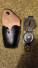 Biete einen neuen Kompass, Farbe "militärgrün". Die Ledertasche hat auf der Rückseite eine Gürtelschlaufe. Der weiße Fleck auf der Ledertasche ist eine Lichtspiegelung. Die Tasche ist tiefschwarz. Das ist ein Privatverkauf.