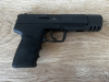 Um die Pistole etwas griffiger bei dem doch Kopflastigem Design zu machen habe ich einen Hogue Griffüberzug drangebaut.