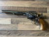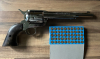 Im Auftrag ! Aus der gepflegten Sammlung eines ehemalg.Vereinskollegen anzubieten:HS- SAA mit 7,5 Zoll Lauf,hartverchromt,9mm,aus 1979 ,gesuchte PTB 189,da offener Stahl-Lauf bis auf Verjüngung der Laufwurzel,kalibergrosse Mündung und kalibergrosse Stahl-Trommel Öffnungen.Knackige und exakte Mechanik.Lag die letzten 30 Jahre in einer Westernvitrine.Im Bild dunkel geschwärzte Griffe...Original Holzgriffe dabei,incl. 50x 9mm Schwarzpulverpatronen.