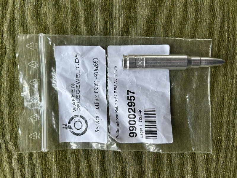 1 Pufferpatrone aus Aluminium für Büchsen mit Kaliber 7x57 wie NEU!, ungebraucht, Besichtigung der Pufferpatrone nach Absprache selbstverständlich gerne möglich, weitere Bilder und Informationen gerne auf Anfrage, Privatauktion: keine Rücknahme, Preisverhandlung, Gewährleistung, Haftung, Abholung der ersteigerten Pufferpatrone vor Ort gegen Barzahlung möglich.