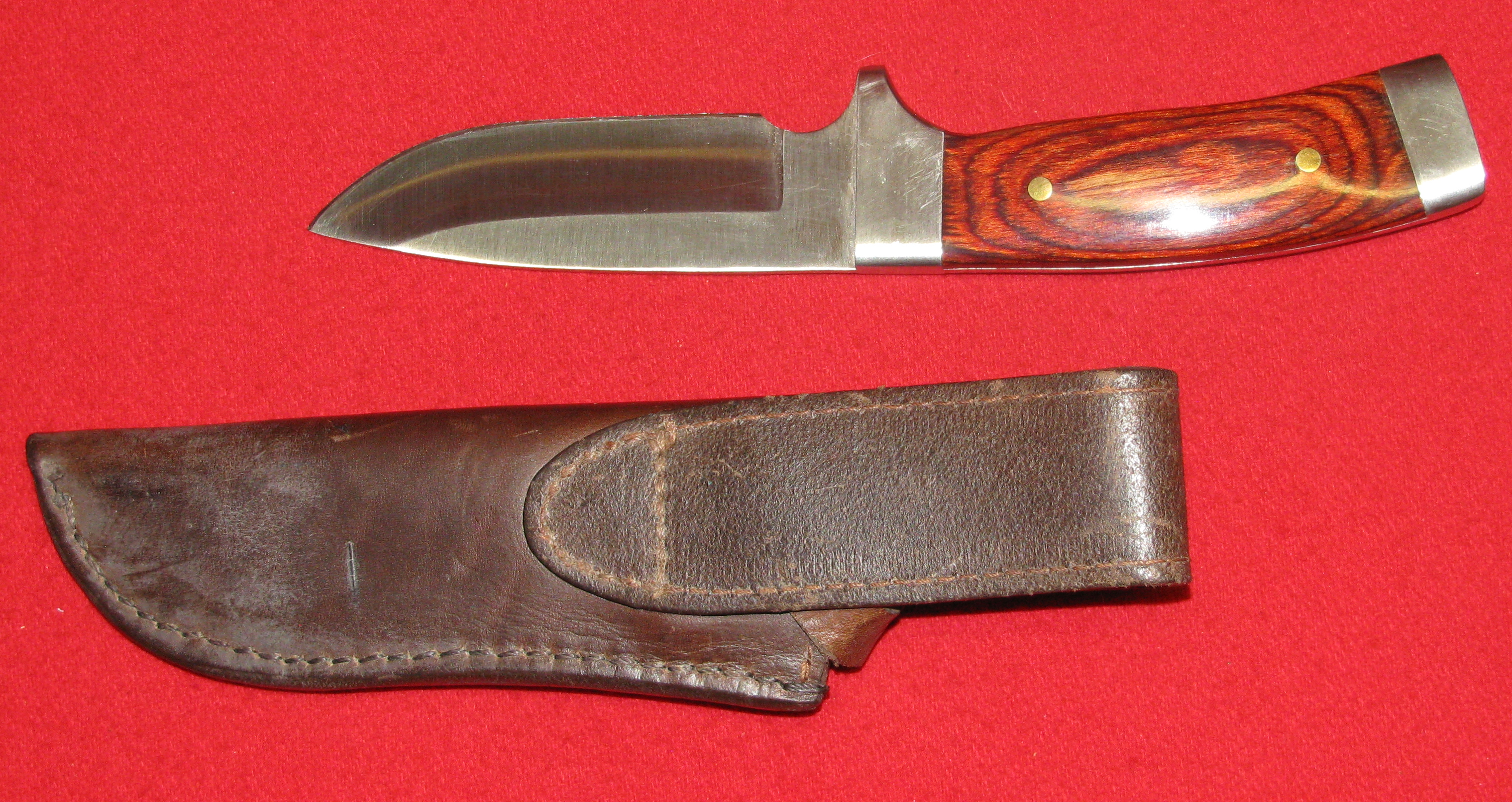 Zum Verkauf kommt ein Jagdmesser von C J H / Herberts mit Lederscheide
