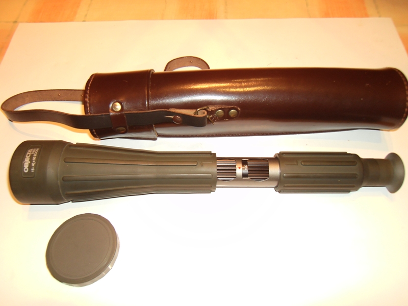 Wenig benutztes Fernrohr 33,5 cm hoch, ausgefahren 40,5 cm, Außendurchmesser 6,5 cm. Feststellung nur in ausgefahrenem Zustand. Einschließlich Schutzkappe. Ein vielseitiges Fernglas für Vogelbeobachtung, Jagd und allgemeine Zwecke. Mit einer maximalen Vergrößerung von 40x bietet es klare und detaillierte Bilder für Outdoor-Interessierte. Farbe olivgrün. Inklusive Köcher in dunkelbraunem Leder mit Tragriemen. Einige kleine Beschädigungen am Leder.