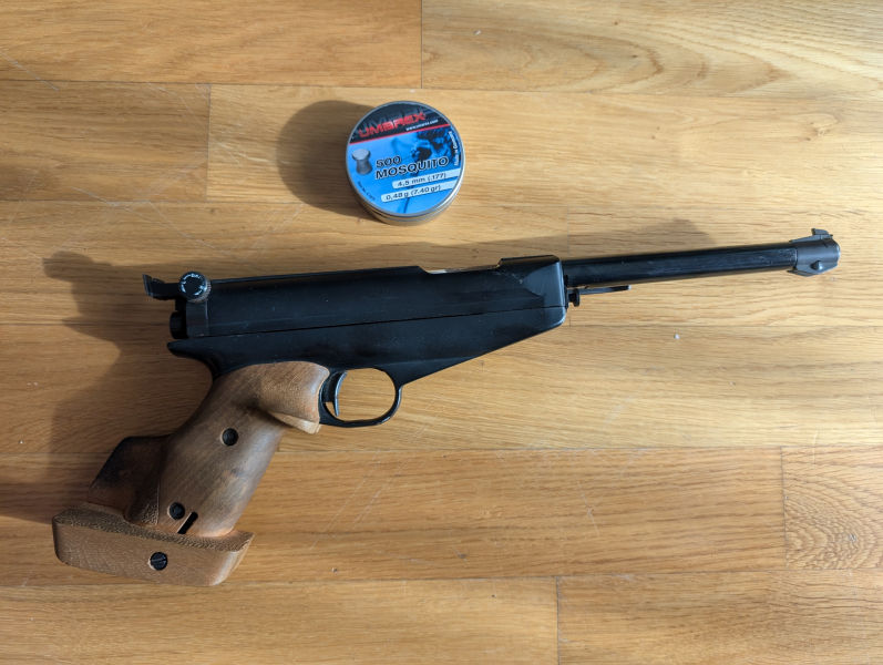 Zum Verkauf steht eine schussbereite Luftpistole der Marke Feinwerkbau, Modell LP65.
