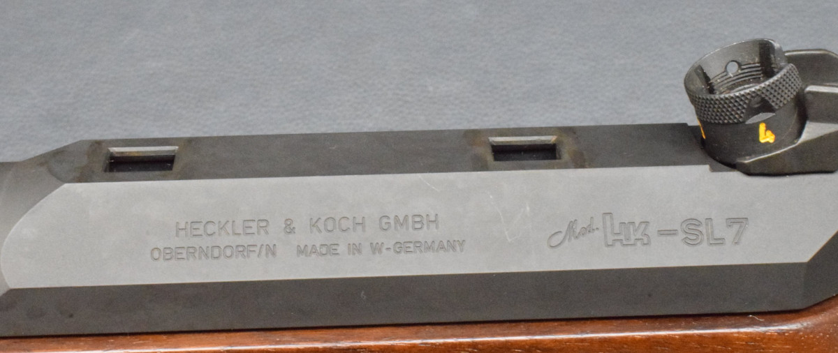 Druckpunktabzug, herausnehmbares 3-Schuss Magazin, kann mit einer original HK SL7 Zielfernrohrmontage montiert werden. Holzschaft mit brünierter Stahlschaftkappe.