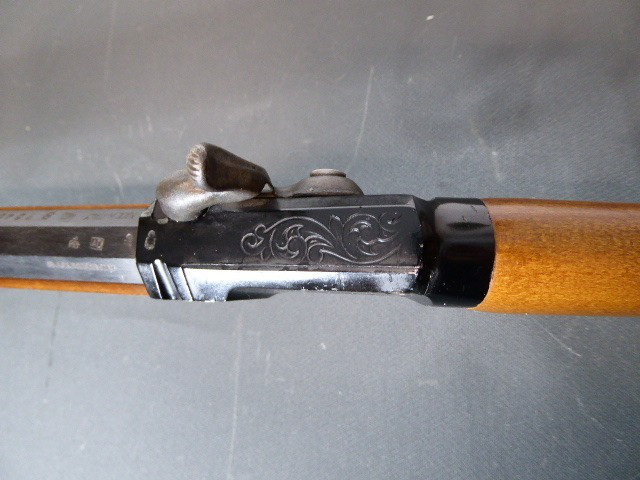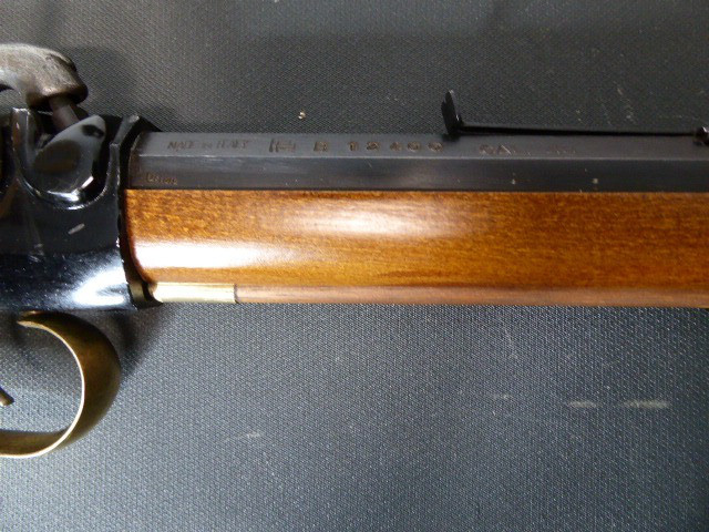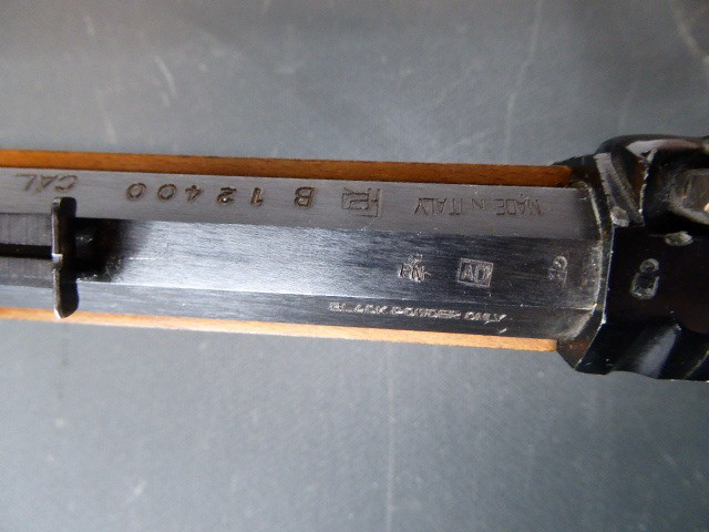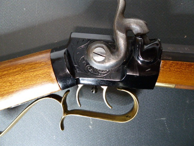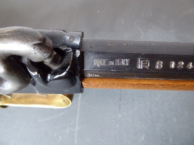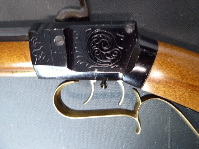 Aus meiner Sammlung gebe ich, ein älteres Berdan Vorderlader Perkussionsgewehr Italienische Fertigung mit Patschbox und Stecher Kal. 45 ab. Schäftung aus ausgesuchten Holz, mit Messingbeschläge ohne Risse oder Durchbrüche und Patschbox. Schlosskasten original geschwärzt. Das Teil ist voll funktionstüchtig mit Stecher, lässt sich auf zwei Stellungen spannen und sauber abschlagen. 8 Kantiger original Brünierter Lauf mit Hersteller und Beschussmarken und originalen Ladestock. Das Teil ist im Guten Sammelwürdigen und zu Gebrauchenden Zustand. Alles andere entnehmen Sie Bitte den Fotos. Gesamtlänge: 108,5 cm, Lauflänge: 66 cm, Kaliber: 45. Kann zu jederzeit bei mir besichtigt werden. Privatauktion keine Rücknahme und Garantie.