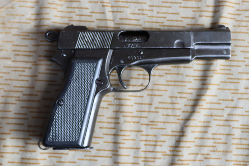 FN High Power Pistole Denix Modellwaffe aus Metall. Spannen und Abschlagen funktioniert.