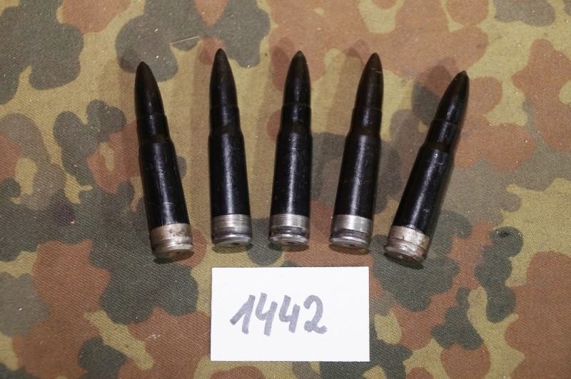Achtung aufgepasst: original Exerzierpatronen (5 Stück) 7,62x39 der AKM / AK47. Völlig frei von Gefahrstoffen, Kunststoffpatronen mit Metallboden / inert / EX. Aus ehemaligen NVA-Beständen. Zustand, siehe Foto. Sie erhalten exakt die abgebildeten Ersatzteile. Beachten Sie auch unsere weiteren Auktionen. Versandkosten ausserhalb Deutschlands 20 Euro pauschal. Und nun: viel Spass beim Bieten.