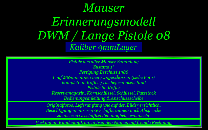 Mauser Erinnerungsmodell DWM Lange 08 Kaliber 9mmLuger aus Sammlerbestand