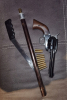 Zum Verkauf steht ein LEP-Revolver ME Single-Action Army im Kaliber 4,5mm mit 10 passenden LEP-Hülsen und der entsprechenden Pumpe. Der Revolver besitzt eine F-Kennzeichnung und ist voll funktionsfähig, der Seriennummer nach eines der älteren Modelle. Insgesamt ist der Zustand als sehr gut zu bezeichnen, leider befinden sich an manchen Stahlteilen