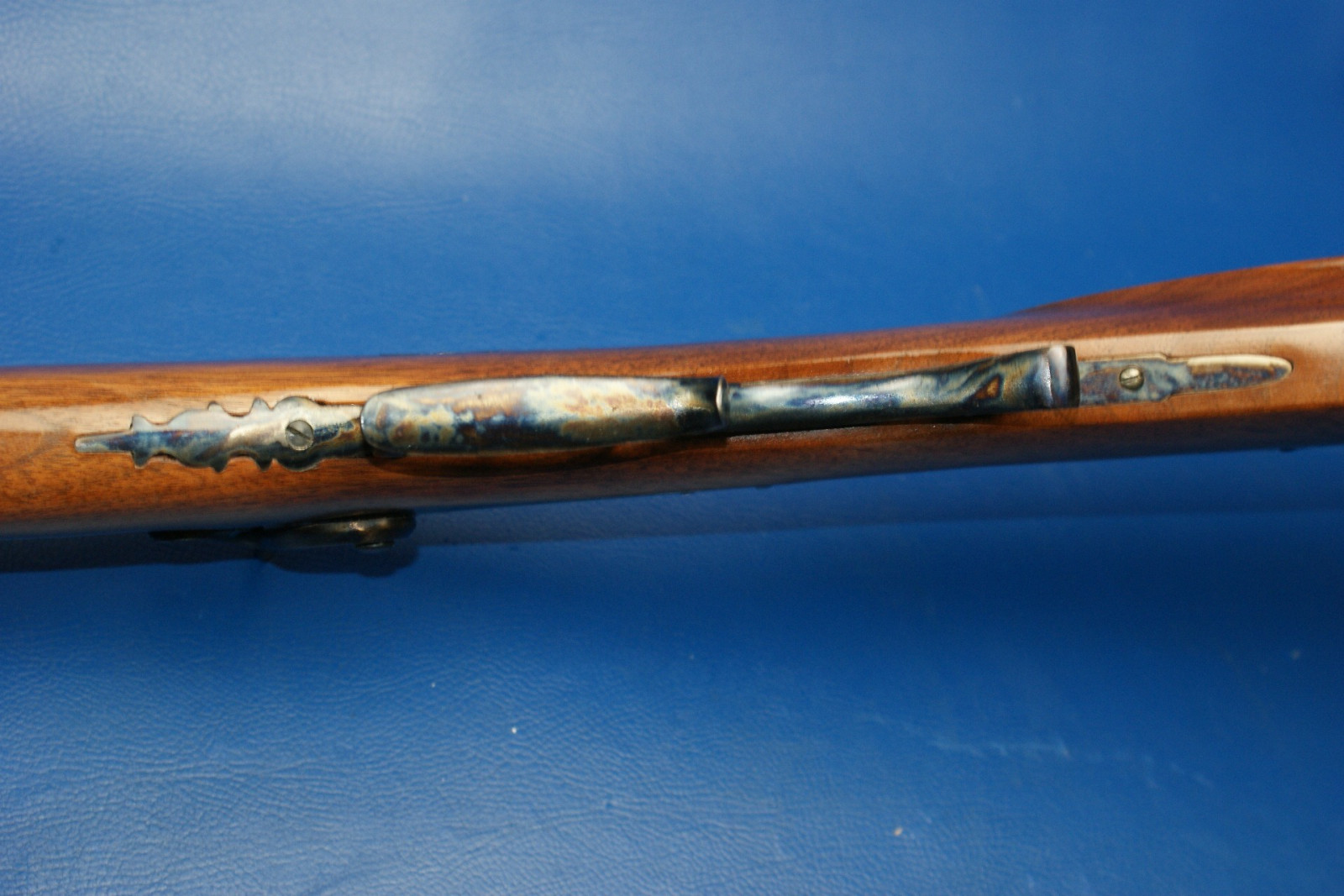 "Herausragender Nachbau eines amerikanischen Plains Rifle mit einem fein einstellbarem Doppelzüngelstecher (Deutscher Stecher). Geliefert wird es mit einem schwarz brünierten Achtkant-Lauf und buntgehärteten Schloss und Beschlagteilen. Im Schaft ist eine Patchbox integriert. Ausgestattet mit verstellbarer Kimme, ist es zur Aufnahme eines Creedmoor-Visiers und Tunnelkorns geeignet. Besonders geschätzt ist die hochwertige Verarbeitung und die vielseitigen Einsatzmöglichkeiten, sowohl für das Scheibenschießen als auch für die Jagd. Es ist das ideale Gewehr auch für Neueinsteiger. Der Name Tryon steht für das 1811 von George W. Tryon (1791 bis 1878) gegründete Handelshaus für Jagd- und Sportwaffen. Er selbst war gelernter Büchsenmacher, der sein Handwerk bei Frederick Goetz in Philadelphia erlernte. Bei Ausbruch des Krieges von 1812 meldete er sich sofort als Freiwilliger und wurde nach Fort Cadwallader beordert. Bevor er jedoch seinen aktiven Dienst antreten konnte, wurde er nach Philadelphia zurückgeschickt. Man war der Auffassung, dass er als Lieferant von Waffen für die Armee von größerem Nutzen sein würde, denn als Rekrut. Unter anderem wurden 1814 in seiner Werkstatt 276 Pistolen für die US-Army zusammengebaut und ausgeliefert. Das Haus Tryon blieb über 100 Jahre und vier Generationen hinweg in Familienbesitz. Die Erfolgsgeschichte des Hauses Tryon ist vor allem darauf begründet, dass man sich auf die Bedürfnisse der Pioniere, Jäger und Siedler einstellte, ihnen die Waffen und Geräte in hoher Qualität lieferte, die zum Leben und Überleben in den Plains Nordamerikas notwendig waren. Hier unsere Version im Kaliber .54. Der Lauf hat eine Drall-Länge von 1.660 mm und 7 Züge."