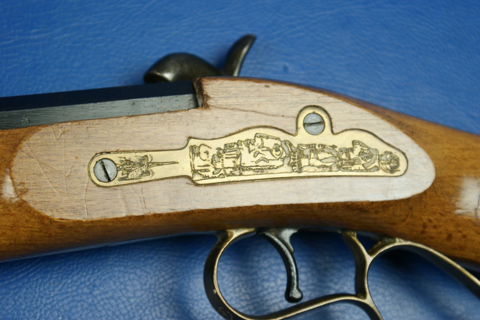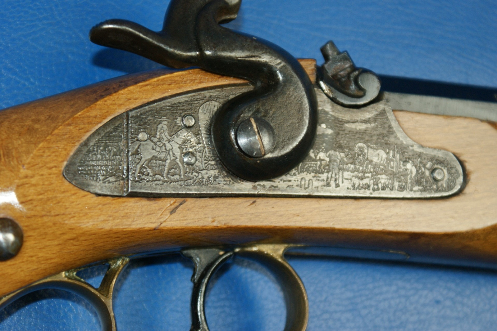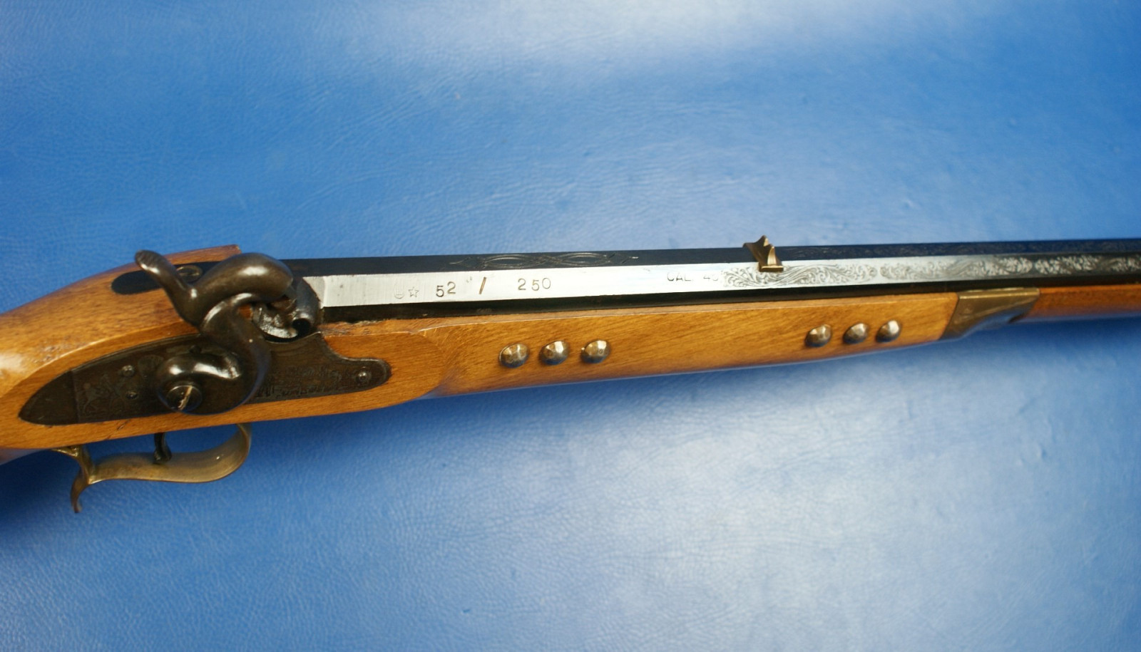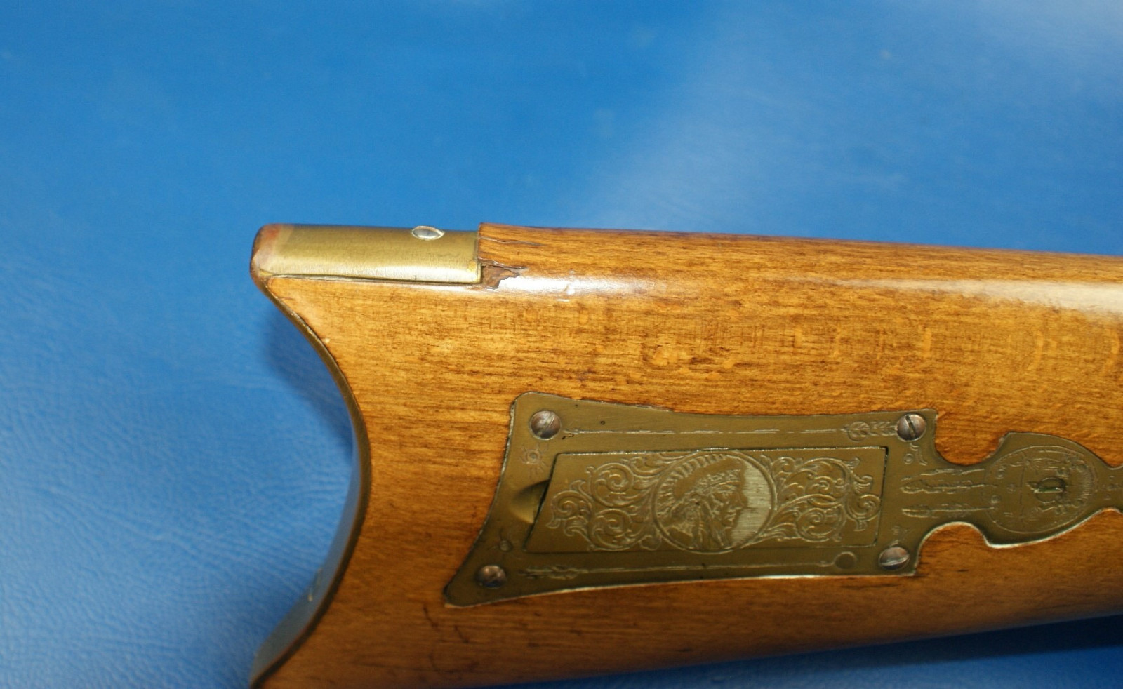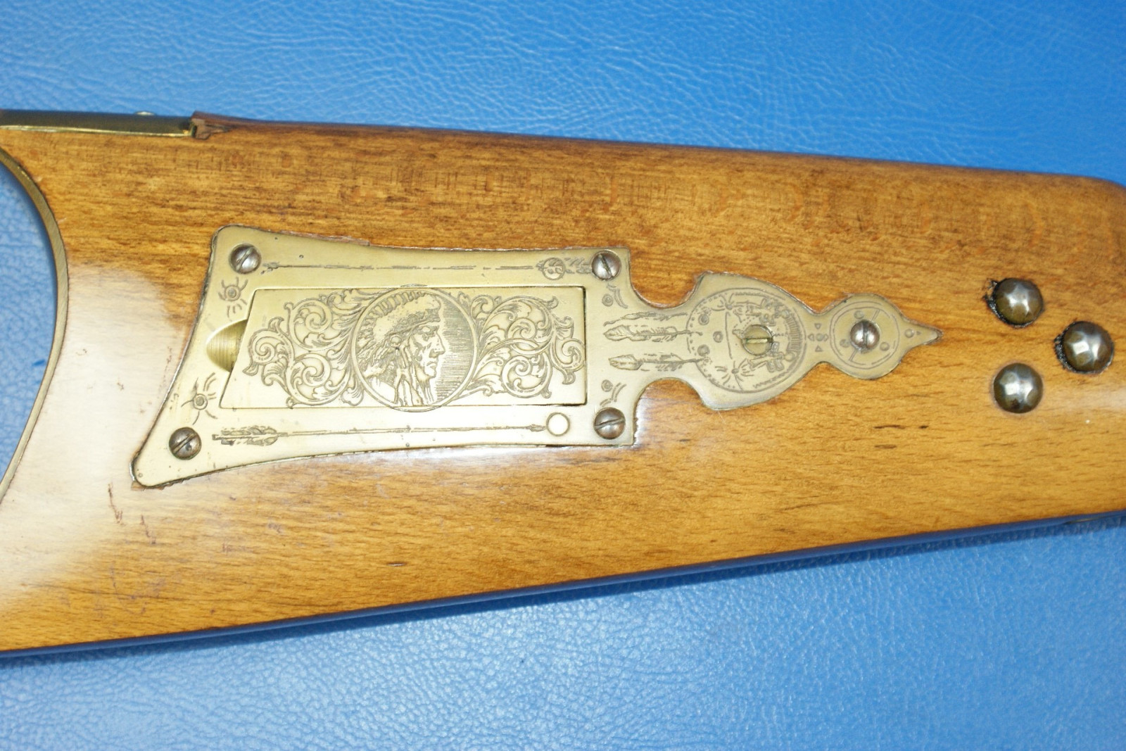 Nr. 52/250. Indianische Motive graviert. Typische Nägel auf der rechten Seite. Lager- und Gebrauchsspuren.