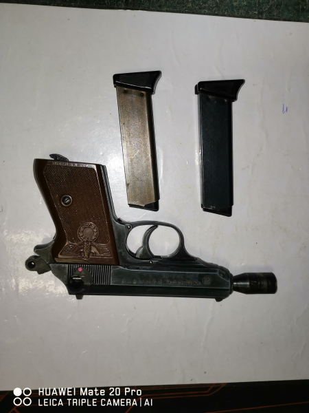 Schreckschusspistole Perfekta EL Alamein 8 mm Knall defekt, Sicherungshebel abgebrochen, 2 Magazine und Abschussbecher