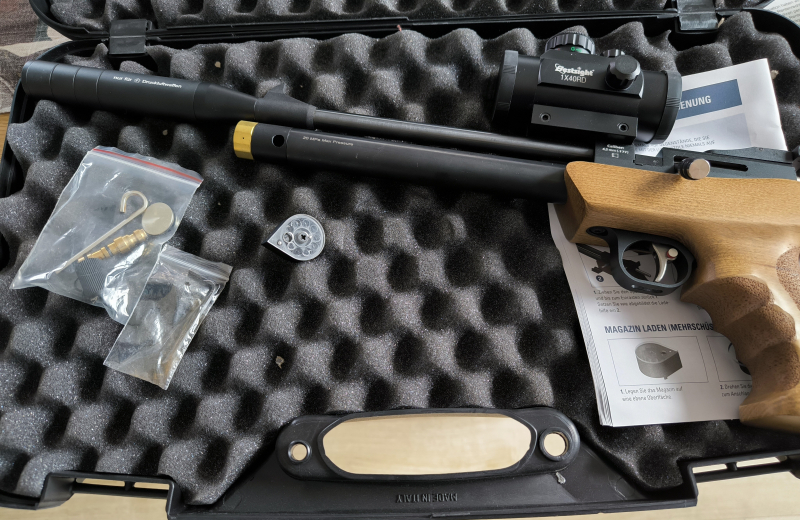 hier eine Pressluftpistole der marke "Diana" - "Bandit" im neuwertigen Zustand. Mit der Pistole wurden ca. 80-90 Schüsse abgegeben. Daher Neuwertig. Zuberhör ist ein Hartschalenkoffer und ein Leuchtpunktvisier der Marke "Bestsight 1x40" mit Rot und Green Dot. Dot ist verstellbar in 3 Größen. Bei weiteren Fragen einfach eine Mail an mich. dirkkurztusch@web.de