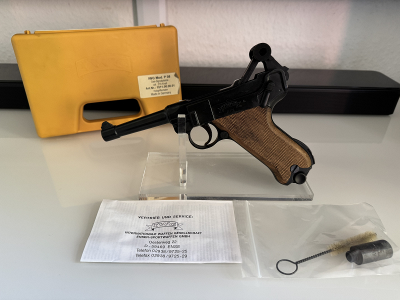 Liebe eguner, hiermit möchte ich aus meiner Sammlung eine wunderschöne IWG verkaufen. die Waffe ist in einem sehr schönen Zustand. Die P08 kommt mit Original Koffer, Reinigungbürste, Gebrauchsanweisung und Pyro Aufsatz. Der Waffen Ständer dient nur zur Veranschaulichung und bleibt mein Eigentum. Bei Fragen stehe ich euch gerne zur Verfügung. Versand folgt nach Zahlungseingang. Ich bitte außerdem um einen gültigen Altersnachweis.