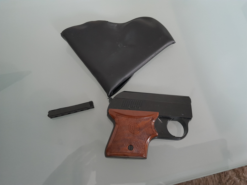 Platzpatronenpistole Röhm RG 3, Kal. 6 mm, PTB 33,mit kleiner Tasche, als Ersatzteilspender/defekt/evtl. unvollständig. Verkauf wie auf Bildern zu sehen. Magazintransport ohne Funktion, Sicherungsschieber lose. Privatverkauf, keine Garantie, keine Rücknahme. Kein Versand ins Ausland oder an Packstation