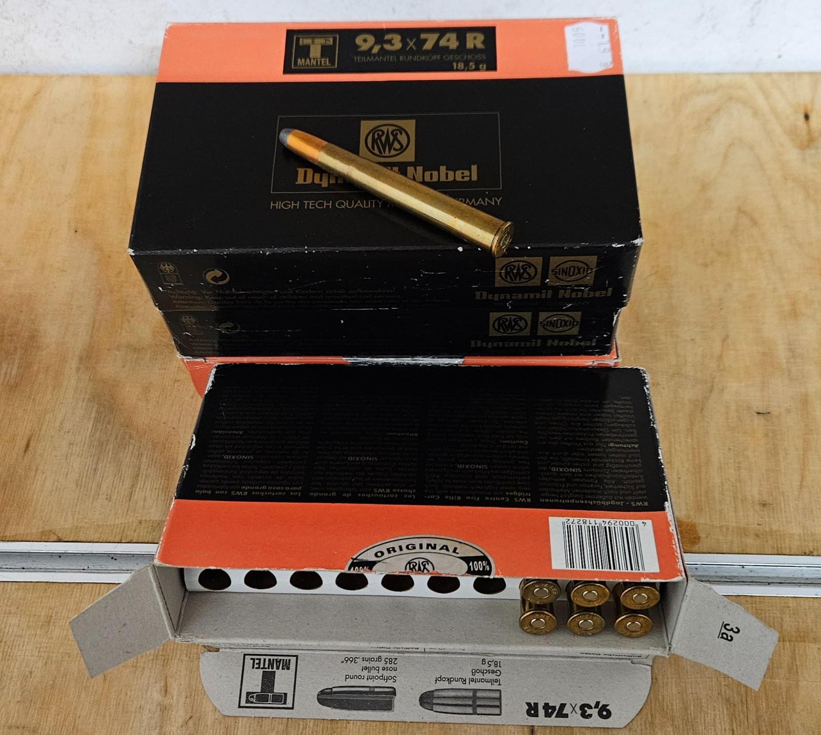 Räume meinen Munitionschrank auf. Vekaufe aus Restbestand 67 Schuss RWS 9,3x74R Teilmantel.