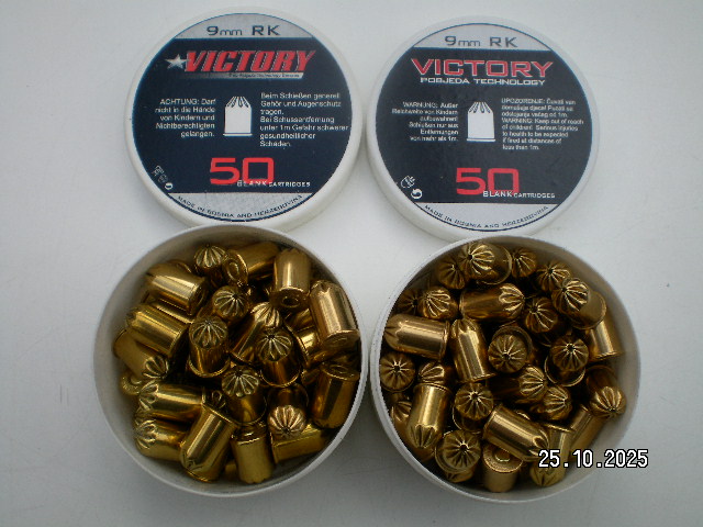 Verkaufe 2 x 50 Schuss 9mm Revolvermunition von Victory. Sehr lauter Knall und gutes Mündungsfeuer. Privatverkauf, keine Garantie, keine Gewährleistung, keine Rücknahme. Verkauf nur innerhalb BRD, Inseln bitte erfragen. Viel Erfolg beim Bieten. Altersnachweis bitte nicht vergessen. Fragen beantworte ich gerne.