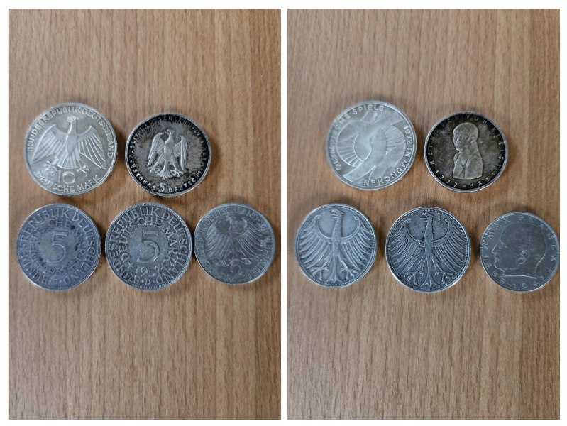 Es sind 4 Silbermünzen 625er und ein 2 DM Stück Max Planck.