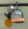 Glashalter mit Glas, + 0,75 – 0,5 und mit dreifach Drehkreuz für den Linsenvorsatz