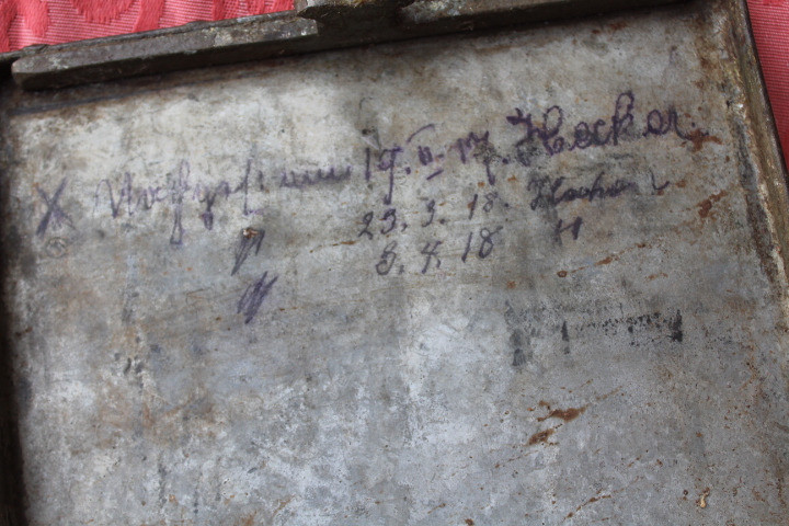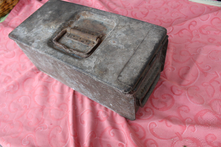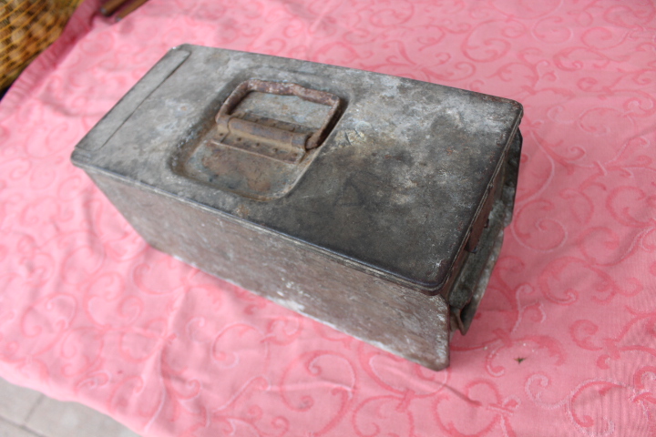 In unberührtem Fundzustand. Keine Beschädigungen. Noch nicht Gereinigt. Der Deckel und Verschluss funktioniert noch Tadellos. Die Kiste stammt aus der Vogesenfront. Gefunden gleich nach dem Krieg von dem Vater eines Verstobenen Freundes von mir, am Donon.(Berg bei Schirmeck) Porto EU = 19,50€