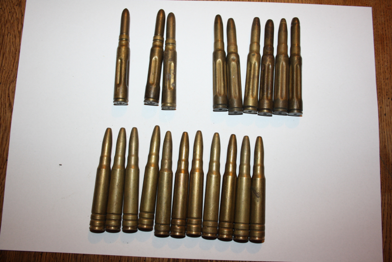 Ihr bietet hier auf 20 EX Patronen für ein Gewehr Mod. K 98. Dabei handelt es sich um vier verschiedene Ausführungen wobei nur zwei Ausführung (8 Patr.) mit Bodenstempel versehen ist