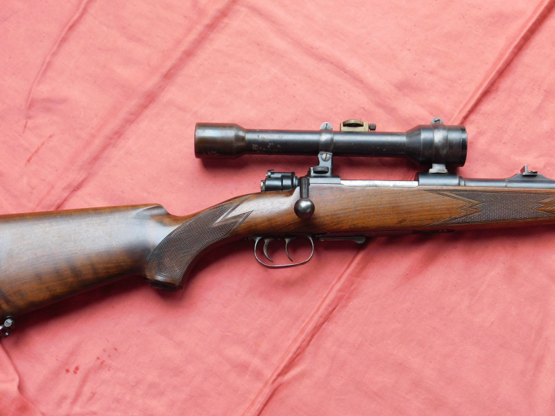 System Mauser 98, Kal. 8x57 IS, deutscher Stecher Abzug Lauf innen matt Profil aber gut sichtbar, mit ZF Ajack 4x90 ehem. Scharfschützen ZF, Abs 1. Gültiger Nitrobeschuss. Reine Sammlerwaffe aufgrund des Alters keine Garantie keine Gewährleistung! Eine wunderschöne Waffe!