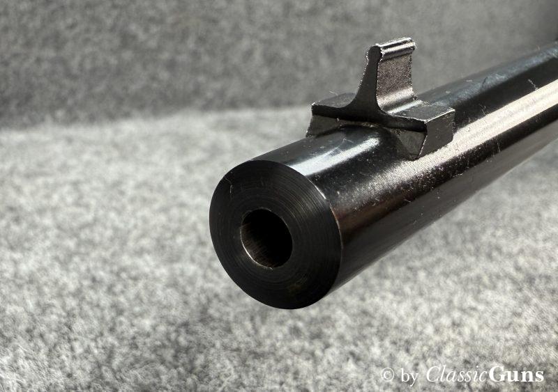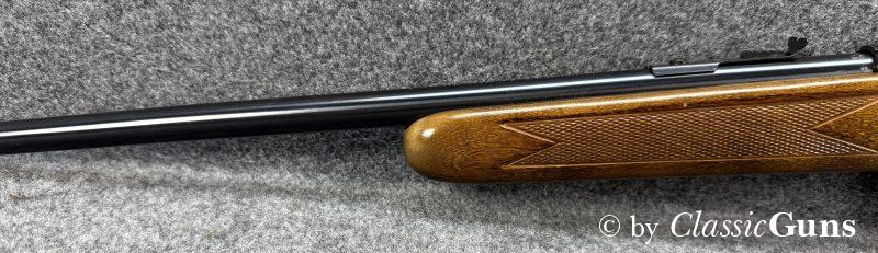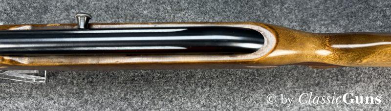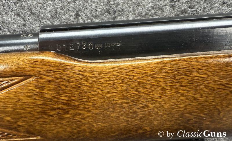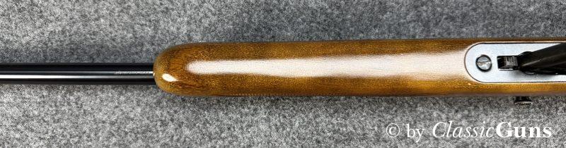 505 mm langer Lauf mit neuwertigem Zug-/ Feldprofil. Brünierung und Schaft mit nur minimalen Gebrauchsspuren. Druckpunktabzug, Rampenkimme, 11 mm Prismenschiene und ein Einsteckmagazin mit einer Kapazität von zehn Patronen.