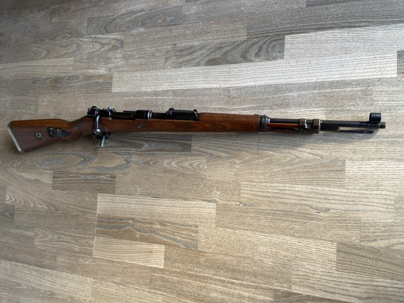 Im Auftrag eines Sammlerkollegen ist hier eine Sammlerwaffe Karabiner 98 k, bnz 1941, zu vekaufen. Die Waffe hat die Original-Brünierung und ist nummerngleich. Der Laufhersteller ist mit Code "308" codiert. Das "R" auf der rechtren Hülsenseite bedeute laut Fachliteratur, dass die Hülse von den Radom-Werken geliefert wurde. Diese Markierung diente wahrscheinlich der Identifizierung unfertiger Teile, die von Radom an Steyr geliefert und mit einem "R" gekennzeichnet wurden, um etwaige Fehler nachverfolgen zu können. Der Lauf ist in den Feldern leicht matt, aber mit guten Zügen. Der Karabiner hat keine Fremdstempel und keinen Nachbeschuss. Daher Abgabe nur an Händler oder Sammler. Der Schaft ist im Originalzustand mit Stempeln. Weiter Bilder auf Anfrage. Besichtigung möglich. Da es sich um einen Privat-Kommissionsverkauf handelt, keine Garantie und Rückgabe möglich.