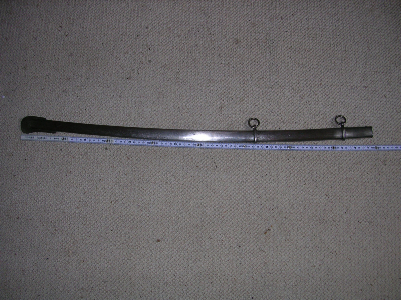 kurze blankeiserne scheide für einen kurzen leichten säbel,2flache dellen sonst eigentlich i.O.die maße der klinge könnn sein, kl.765 mm, kb.20 mm. ks. 6mm