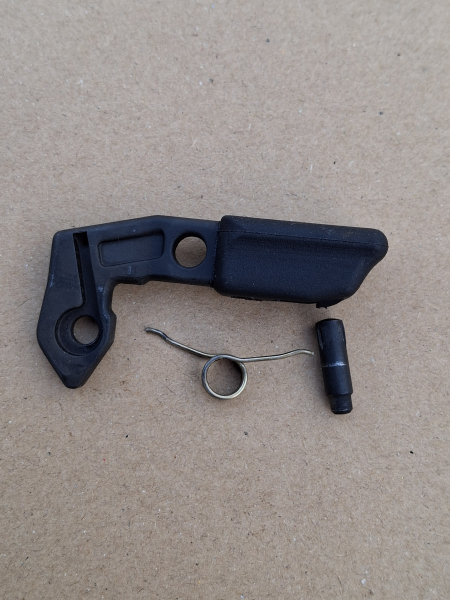 Modell / Marke : Heckler & Koch G3 / HK33 & Klone Teil : Spannschieber , komplett mit Feder & Haltebolzen ; schwarze Ausführung Zustand : neuwertiger , unbenutzter Originalzustand ! Original Heckler & Koch Fertigung