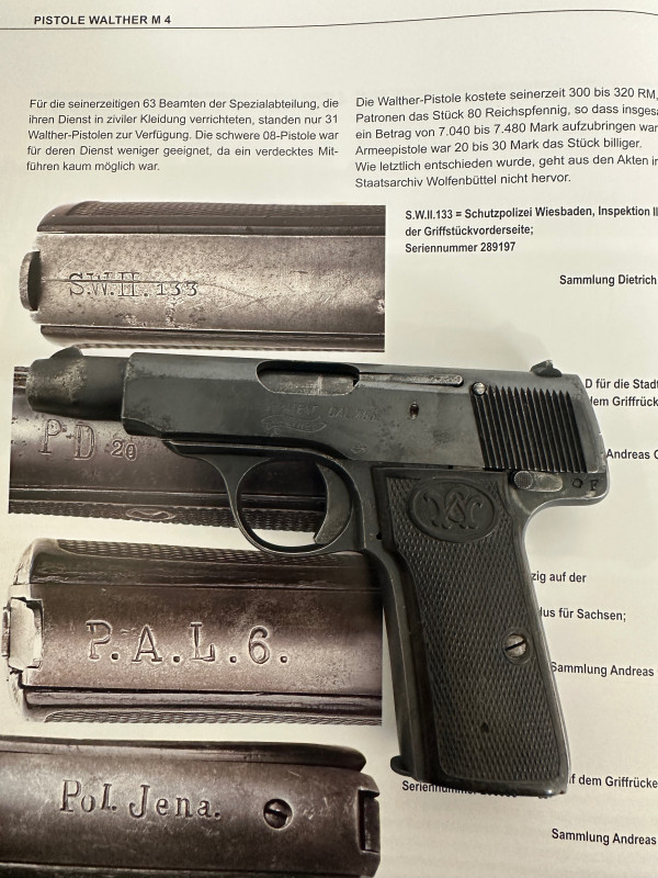 Selbstladepistole Walther Mod.4 Kal.7,65mmBrow. "Schutzpolizei Wiesbaden" S.W.II.133 SN289197 Abb.