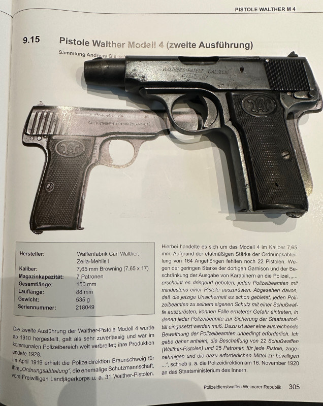 exakt diese Waffe ist auf S.306 im Buch"Dienstwaffen der deutschen Polizei und Gendamerie" Weimarer Republik 1919-1933, ehemals "Sammlung Dietrich Jonke abgebildet