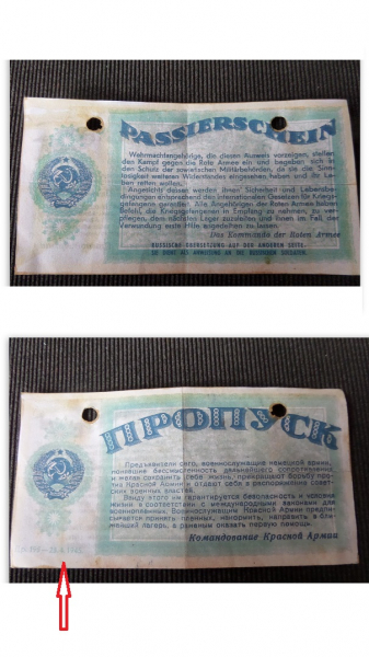 Sowjetisches Flugblatt mit "Passierschein" an die Angehörigen der Wehrmacht , April 1945 WW2.
