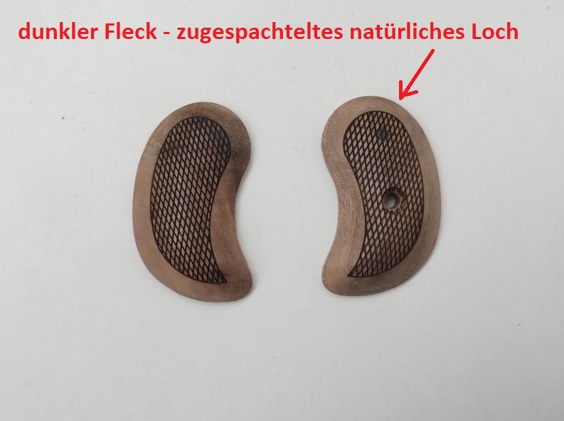 - Zugespachter Holzmangel auf einer Griffschalen außen- sowie innenseitig, siehe Foto.