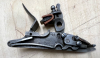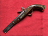 Notdürftig repariert, daher Verkauf als defekt, bzw. Ersatzteilträger. Die beiden Rasten halten und man kann spannen und abschlagen, aber alles nur notdürftig repariert. Ich konnte keine passende Feder auftreiben. Siehe Detailfoto von Schloss. Der Gesamtzustand der Pistole ist nicht mehr gut, eben stark gebraucht, aber der Lauf sieht innen noch einigermassen OK aus. Auch diese Waffe ist aus einem Nachlass. Leider ist auch bei dieser ein