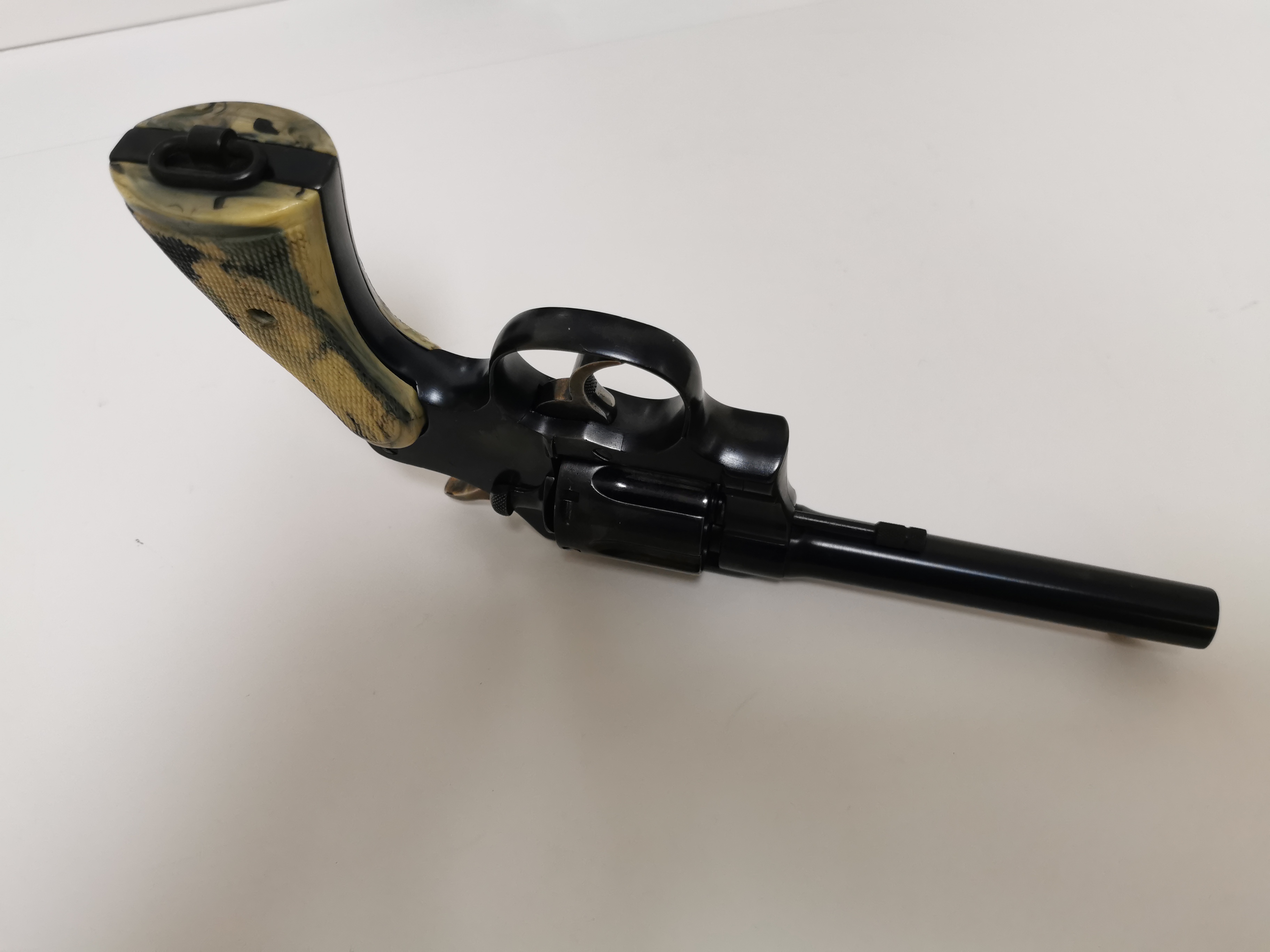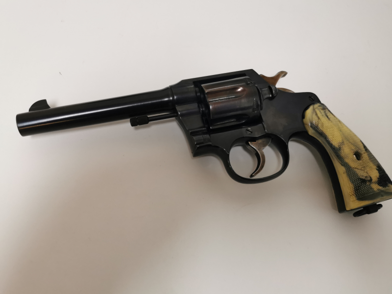 # der Revolver wurde von Colt`s Patent Firearms Manufacturing Co., Hartford, Connecticut U.S.A hergestellt von 1898 bis 1944. Wegen seiner Zuverlässigkeit und robusten Struktur wurde er nicht nur militärisch eingesetzt sondern auch an Private verkauft und von staatlichen Organisationen sowie in Polizeidiensten geführt. #