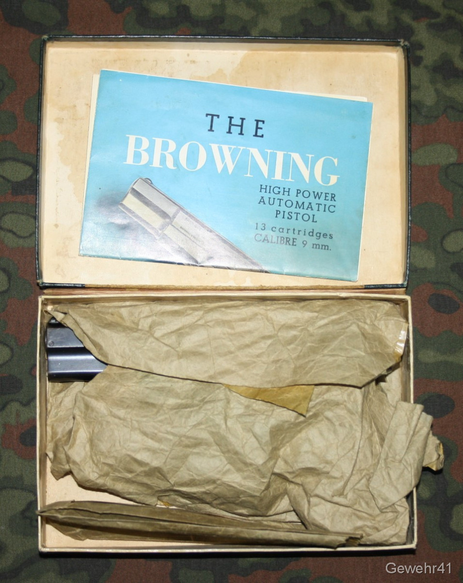 Sie bieten auf diese wunderschöne Vorkriegs FN High Power "Capitan" im Kal. 9x19 in der originalen Verpackung und mit Zubehör. Die Pistole stammt aus einer Sammlung und wurde dort nicht geschossen. Lauf und Funktion einwandfrei.
