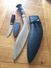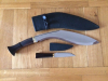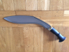 5160 Federstahl, beidseitiger Hohlschliff, Klinge 30,5cm, 507 Gramm, Tora ist einer der drei führenden Hersteller, fertigt originalgetreu leicht, handlich mit guter Schwerpunktlage, traditionell geschmiedet und gehärtet, kein Touristen CNC oder indisch antik Weichstahl Kukri, mit zerhacktem Prüfnagel, leichte Gebrauchsspuren. Scheide für schlanke Trageweise ohne Tasche für Karda neu beledert, Seitennähte. stabile Lederscheide für Karda. Messingendkappe an Scheidenspitze unter dem Leder.