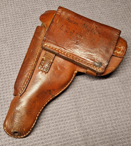 Angeboten wird hier diese besonders gut erhaltene Pistolentasche aus dem Jahr 1943. Die gesamte Tasche, sämtliche Nähte sowie das Leder befinden sich in hervorragendem Zustand. Ein gesuchtes und in diesem Zustand seltenes Stück. Die Tasche hat noch auf der Rückseite den Namen des ehemaligen Besitzers Hptm, Müller. Beachtet die Bilder, sie sind Bestandteil der Auktion. Versandkosten gelten für versicheren Versand mit DHL innerhalb der BRD. Bieter aus dem Ausland bitte Versandkosten erfragen. Foreign bidders pls. ask for shipping costs to your country. Wie immer - die ist eine Privatauktion - keine Garantie und keine Rücknahme. Fragen bitte rehtzeitig VOR Ablauf der Auktion stellen. Schaut auch mal in meine anderen Auktionen - es lohnt sich.