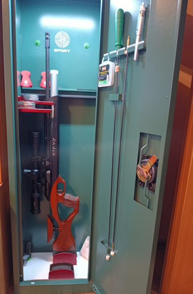 biete hier ein umfangreiches Paket wegen Hobbyaufgabe zum Verkauf an ! Es handelt sich hier um einen beleuchteten Waffenschrank "Profirst" ,welcher speziell für und die zur Auktion gehörenden beiden freien Waffen (7,5J/4,5mm) "Steyer Hunting 5A" und "Steyer Challenge Hunting" modifiziert wurde ,so das beide Gewehre "schonend"/stehend darin aufbewahrt werden können !Im obersten Fach lagert Zubehör zur Waffenpflege (siehe Bild ),11Dosen Diabolos H&N Field Target Trophy 0,56 g/4,5mm ( Hunting 5A) b.z.w. 12 Dosen JSB Exact 0,547g/5,51mm (Challenger Hunting)!