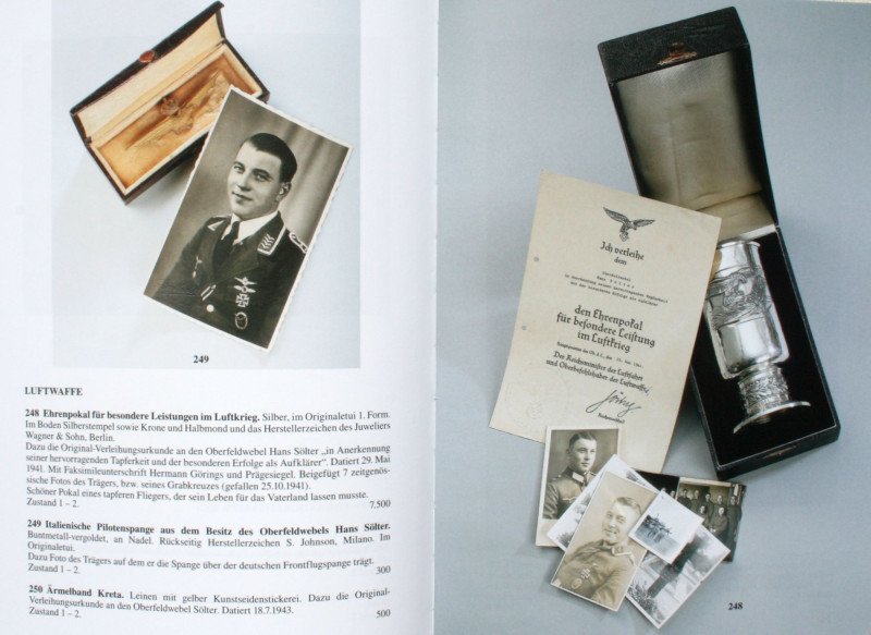Im einzelnen sind abgebildet: Orden- & Ehrenzeichen, Verleihungsurkunden, Blankwaffen, Helme, Schirmmützen und vieles mehr.