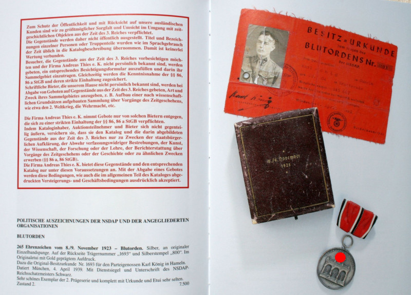 Sie bieten hier auf ein Umfangreiches Nachschlagewerk für den Sammler von Orden, Militaria, Waffen sowie den Uniform- und historisch interessierten Sammler. In diesem Katalog sind 459 hochwertige Artikel, davon sind
