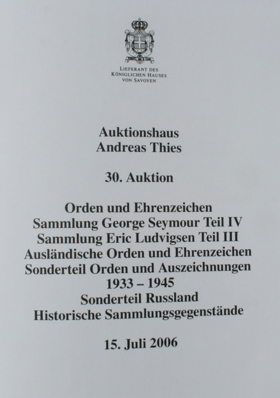 Bei dem Katalog handelt es sich um den Auktionskatalog zur 30. Auktion 2006 vom renommierten Auktionshaus Andreas Thies !
