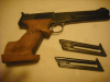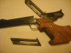 Sie bieten auf eine Sportpistole Colt Woodsman Pistole, Kaliber .22 lr / lfb, Lauf 6 Zoll / 150mm, 2 10 Schuss Magazine, Sicherung, Scheibenkorn und Micrometer Kimme. Gepflegte Waffe. Griff Größe M.